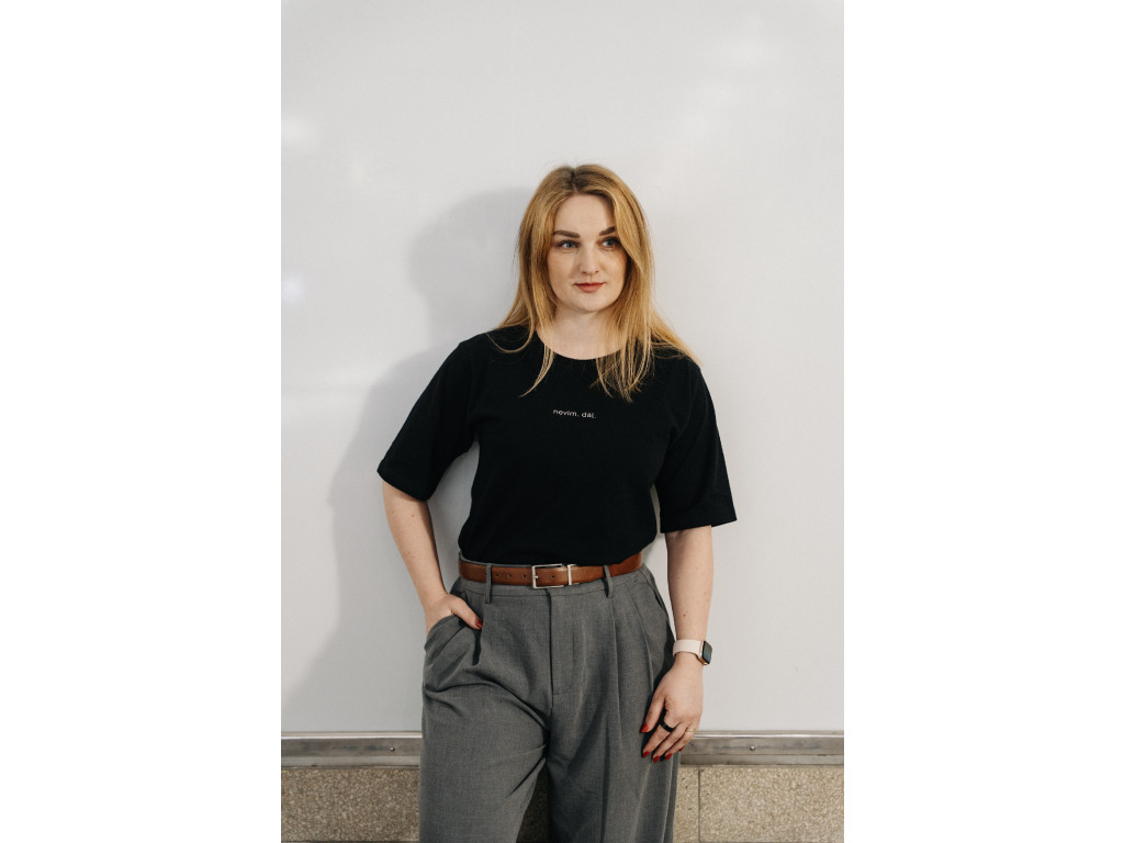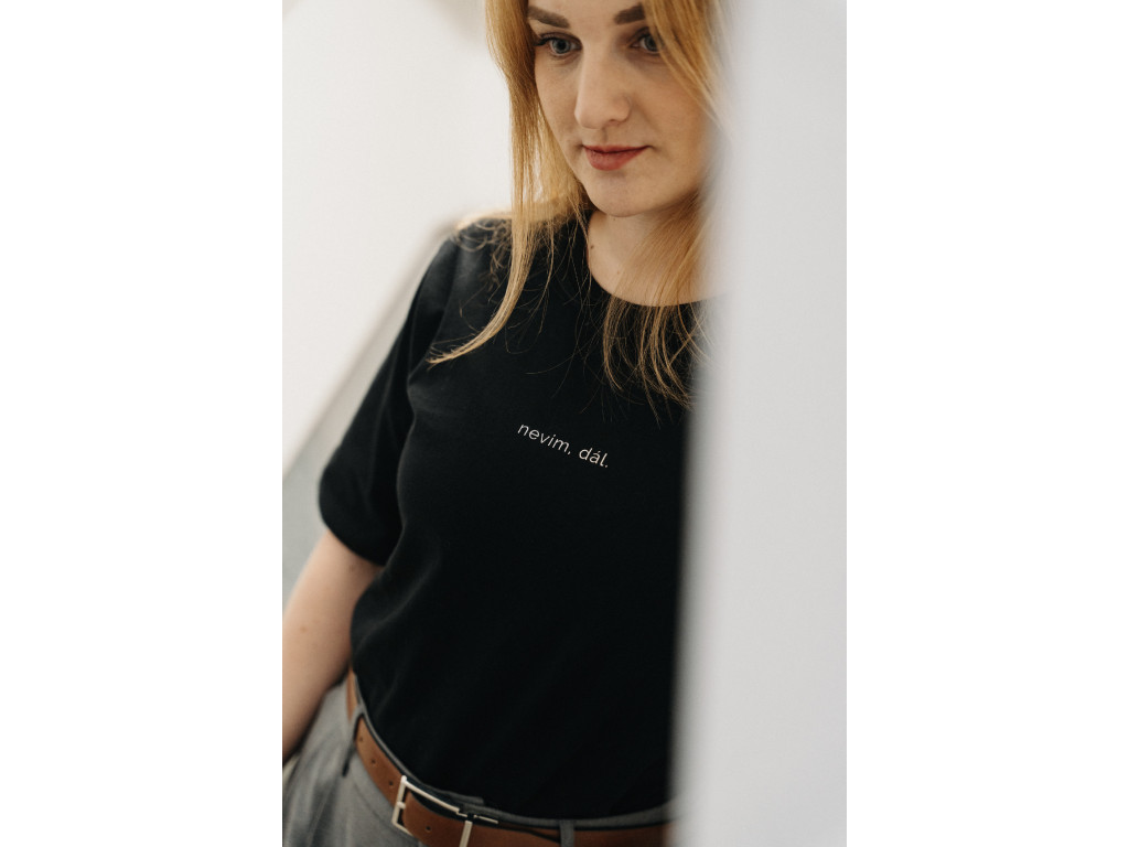 Chtěla jsem napsat popisek na tohle tričko, ale v hlavě mi zní jenom: nevim, dál. Tohle je životní pravda na triku.